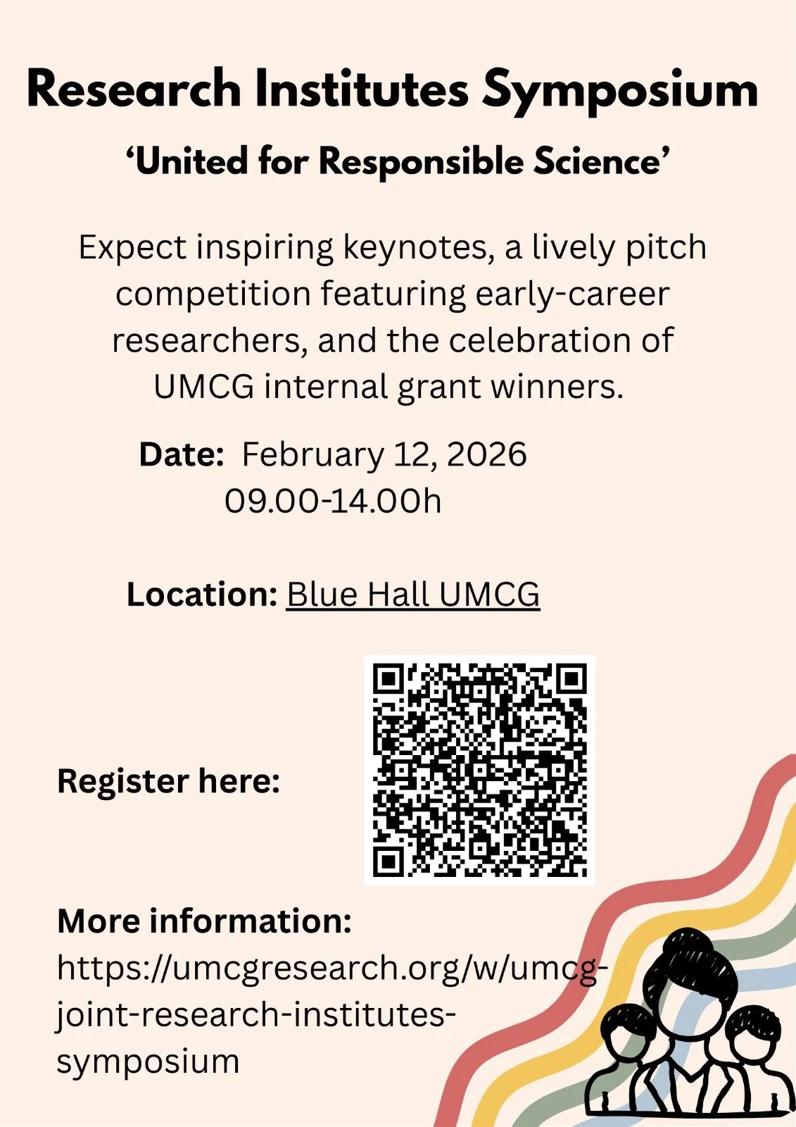 This is your chance for a last-minute registration if you'd like to attend the UMCG Joint Research Institutes Symposium “United for Responsible Science”.